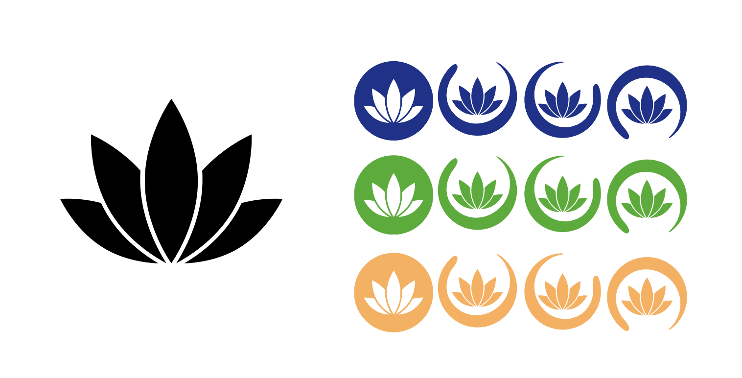 I utilized the lotus flower, a natural fit for the business' Indian roots and its wellness practices, surrounded by a modernized Enso circle, referencing wholeness and the circle of life.